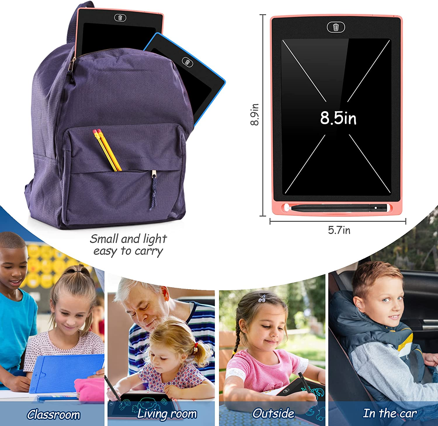 2 Pack LCD Writing Tablet, 8.5 Inch Toddler Colorful Doodle Board, Erasable Elec