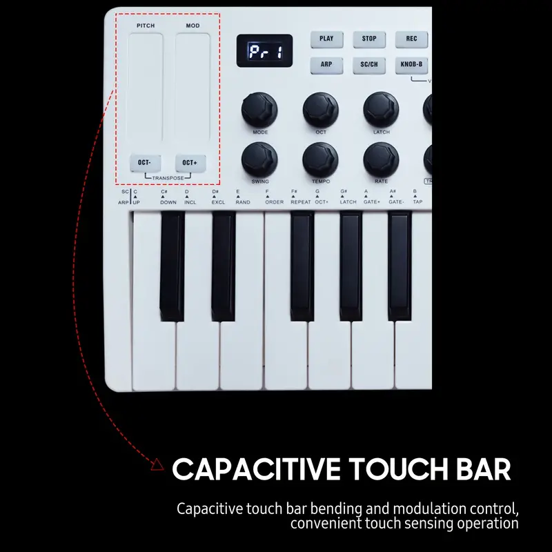 25-Key MIDI Control Keyboard Mini Portable USB Keyboard MIDI Controller with 25 Velocity Sensitive Keys 8 RGB Backlit Pads 8 Knobs