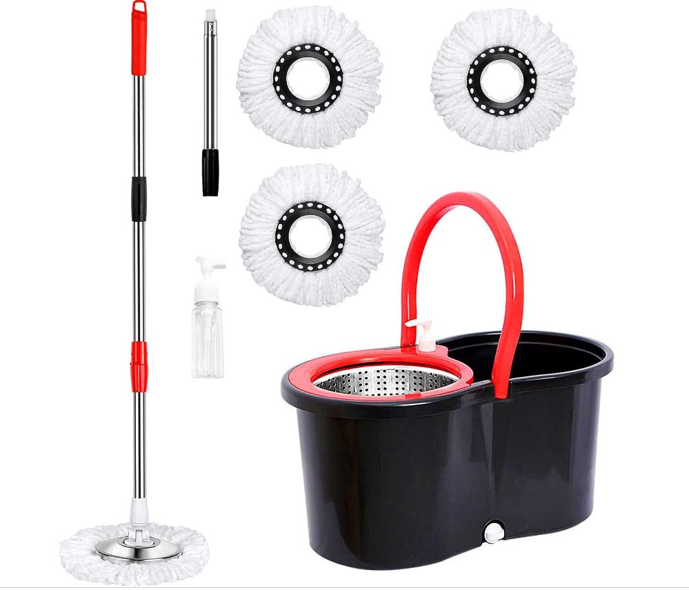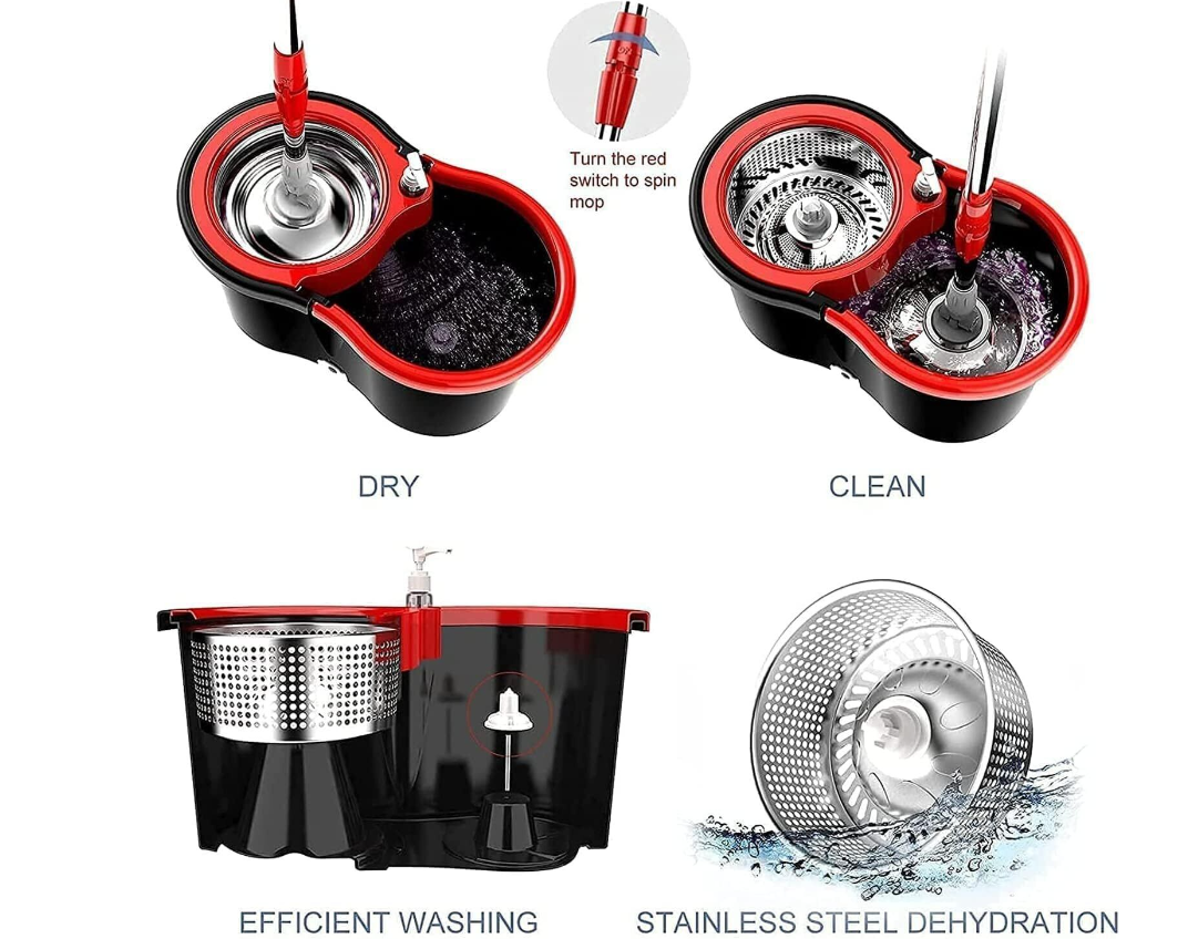 • Efficient spin mop: Our mop and bucket system features a self-washing and spinning basket, which simplifies cleaning and cuts down cleaning time. The built-in wringer basket is designed to contain splash and spray within the bucket, preventing it from reaching the floor during the wringing process.