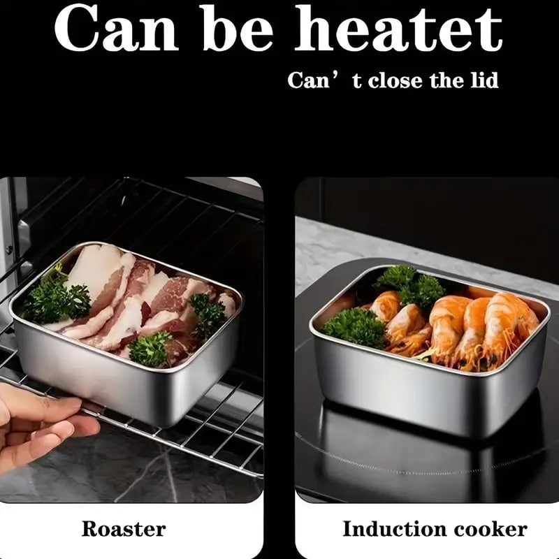 4 Sets Stainless Steel Fresh-keeping Box, Refrigerator Cooler Storage Box, Sealed Anti-overflow Bento Box, Picnic Lunch Box, Meal Prep Square Box, For Camping Picnic And Beach, Home Kitchen Supplies