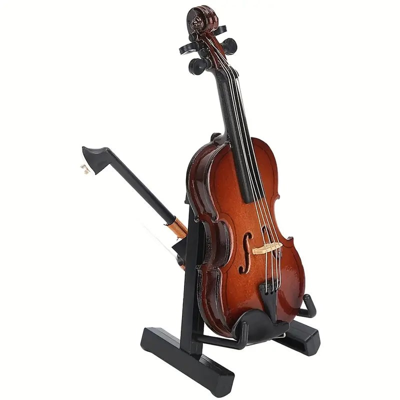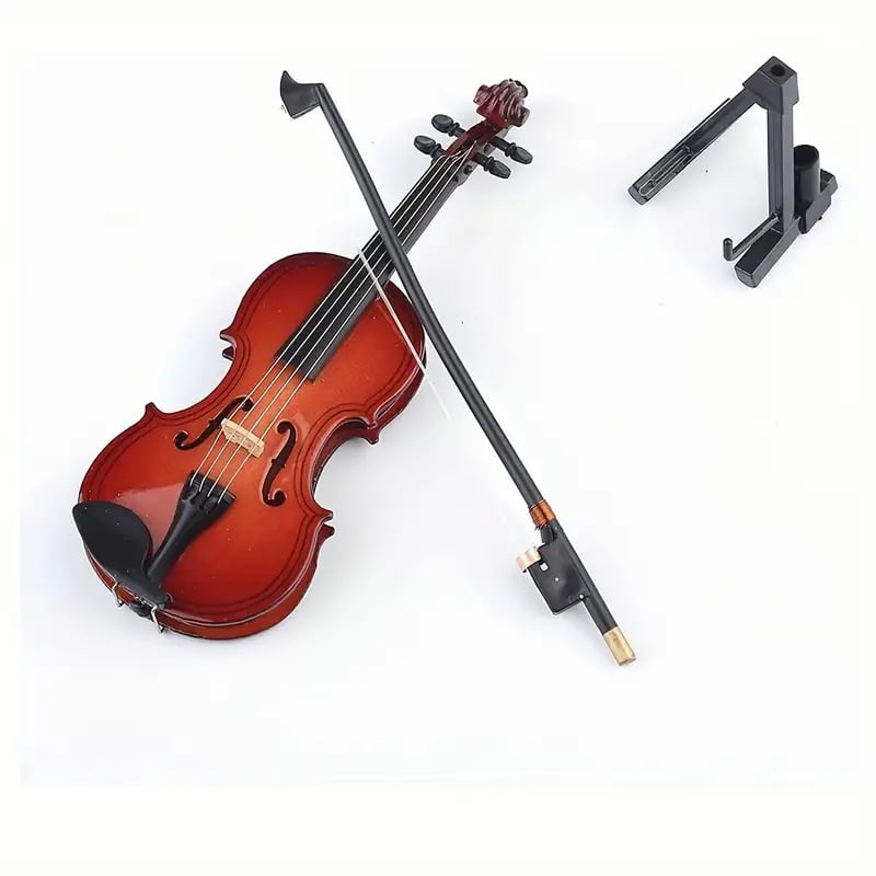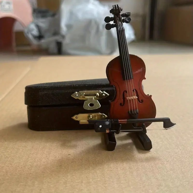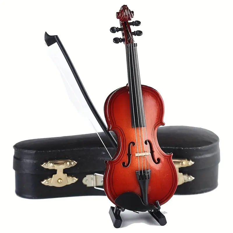 Beautiful Wooden Miniature Violin Set: Stand, Bow, Case, And Musical Instrument - Perfect Home Decoration,Christmas And Halloween Gift,Thanksgiving Gift!