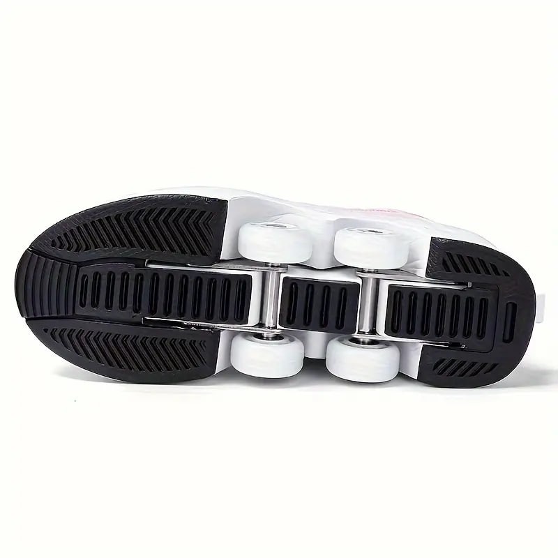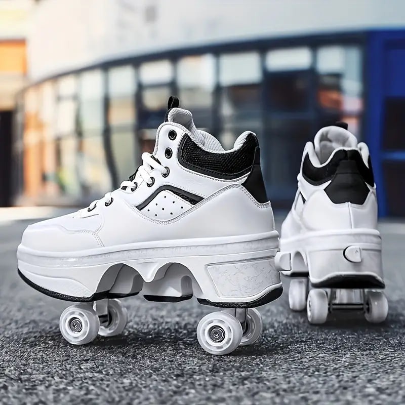 Boy's Trendy High Top Roller Shoes With 4 Detachable Wheels, Comfy Lace Up Casual Skate Sneakers