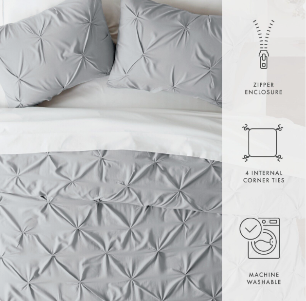Kaycie Gray Fashion Pinch Pleat Duvet Cover Set - Pintuck Design