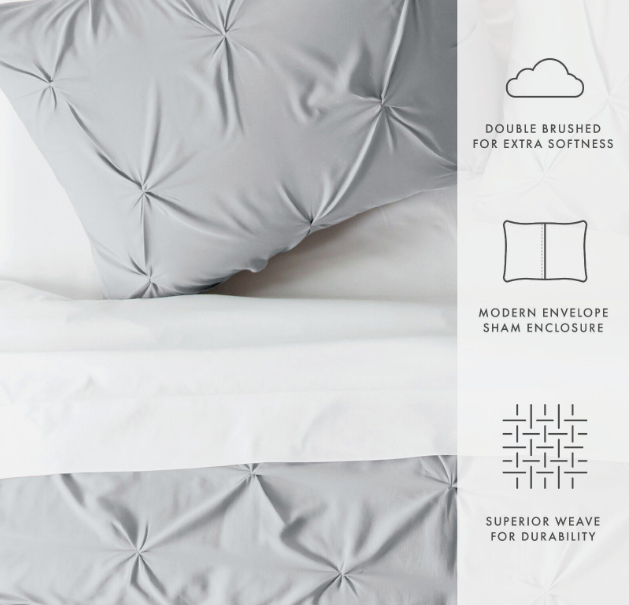 Enjoy the ultimate comfort and elegance with the 3-Piece Pinch Pleat Solid Duvet Cover Set by Kaycie Gray Fashion. The Duvet Cover set are crafted with the finest microfiber that’s softness is unsurpassed. In addition, this quality set is durable, fade resistant, and wrinkle free. The 3-Piece Duvet Cover Set comes in 6 gorgeous colors guaranteed to match any style.