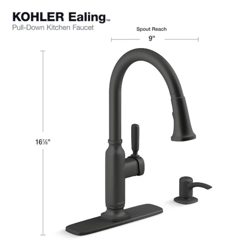 KOHLER Ealing Matte Black Single Handle Pull-down Kitchen Faucet R28703-SD-BL