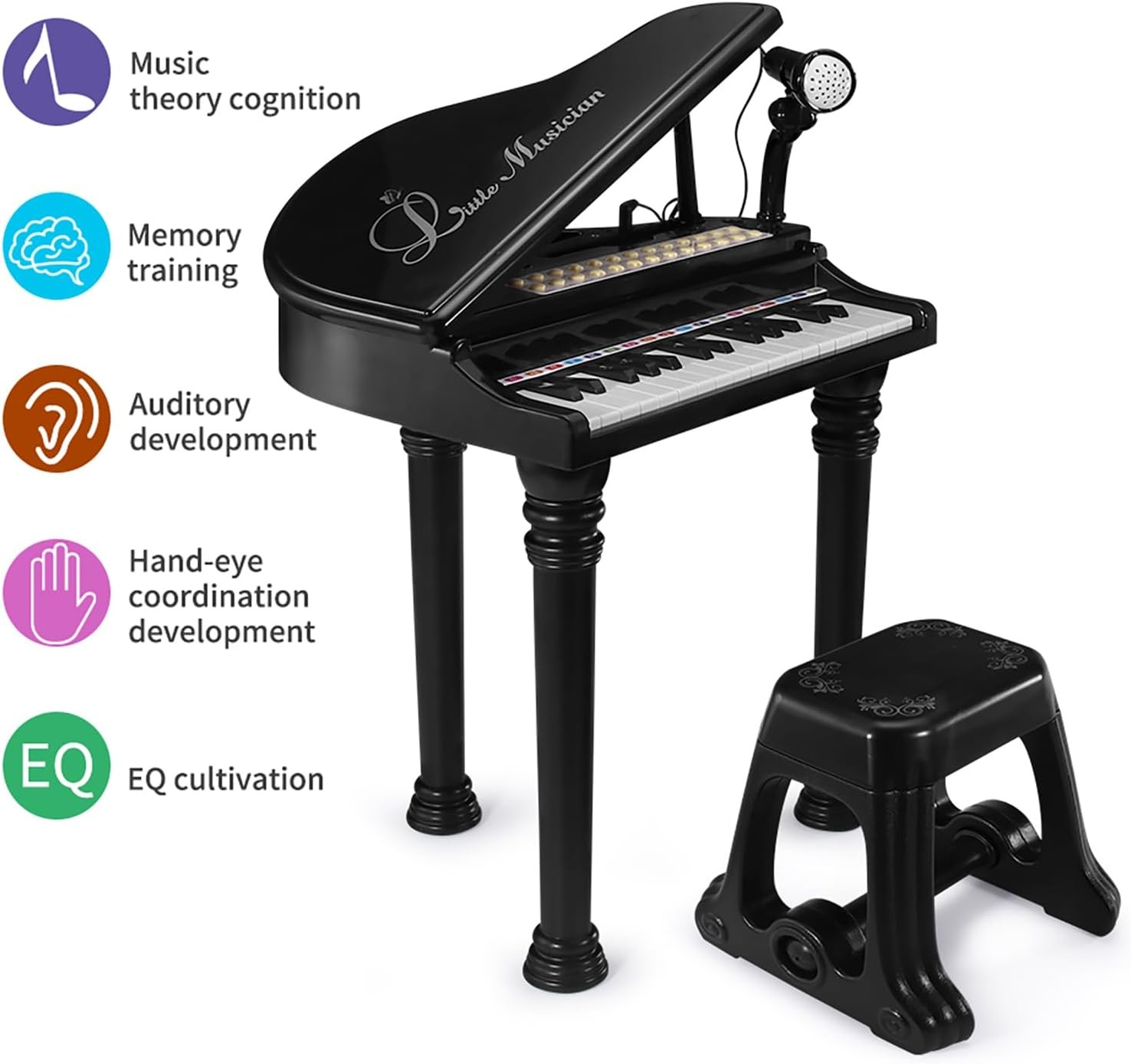 • [Safe Material & Stable Structure]—Toddler piano is made of environmentally friendly material of non-toxic ABS plastic which is safe for your kids to play with. In addition, we have widened and reinforced the piano legs to keep the piano stable without tipping over like other pianos.