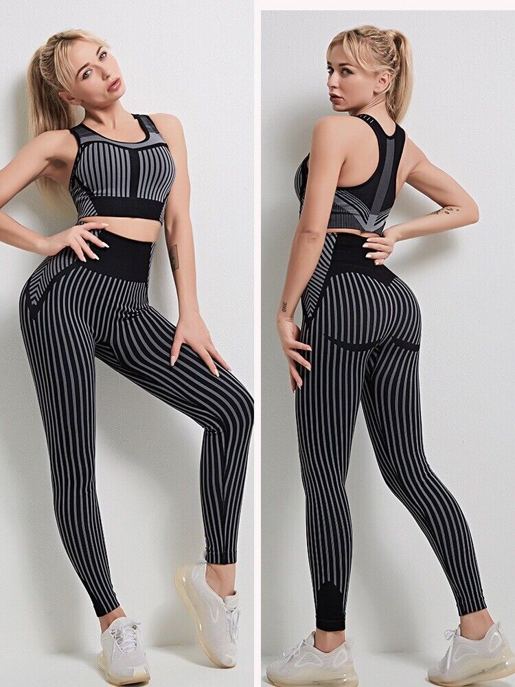 Women Workout 2 Piece Outfits Seamless High Waist Yoga Legging Sport Bra Gym Set