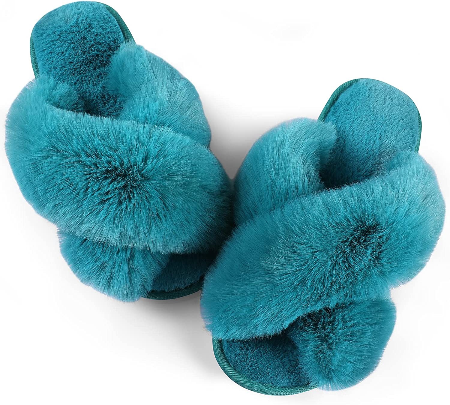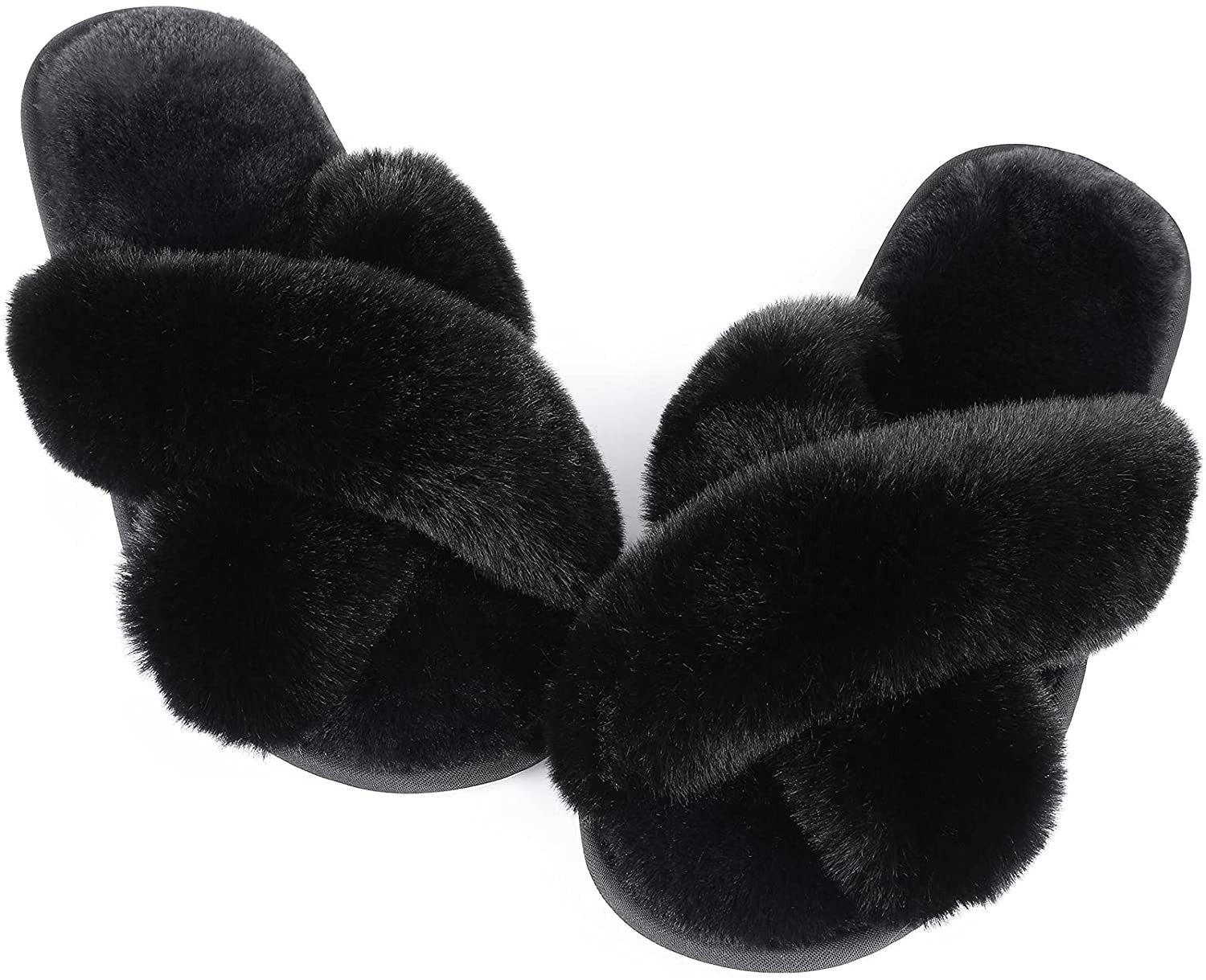 Womens Fuzzy Memory Foam Slippers - Ankis Cross Band Cozy Plush Home Slippers Fl